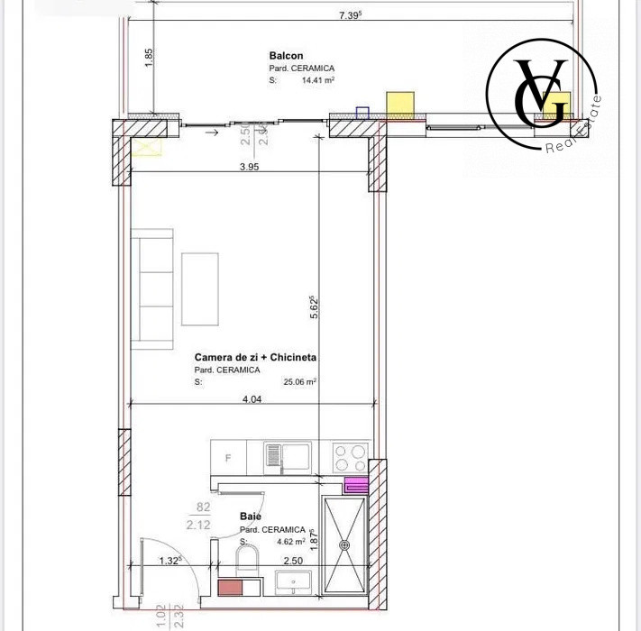 • Tipul apartamentului: una camera, tip:open-space.