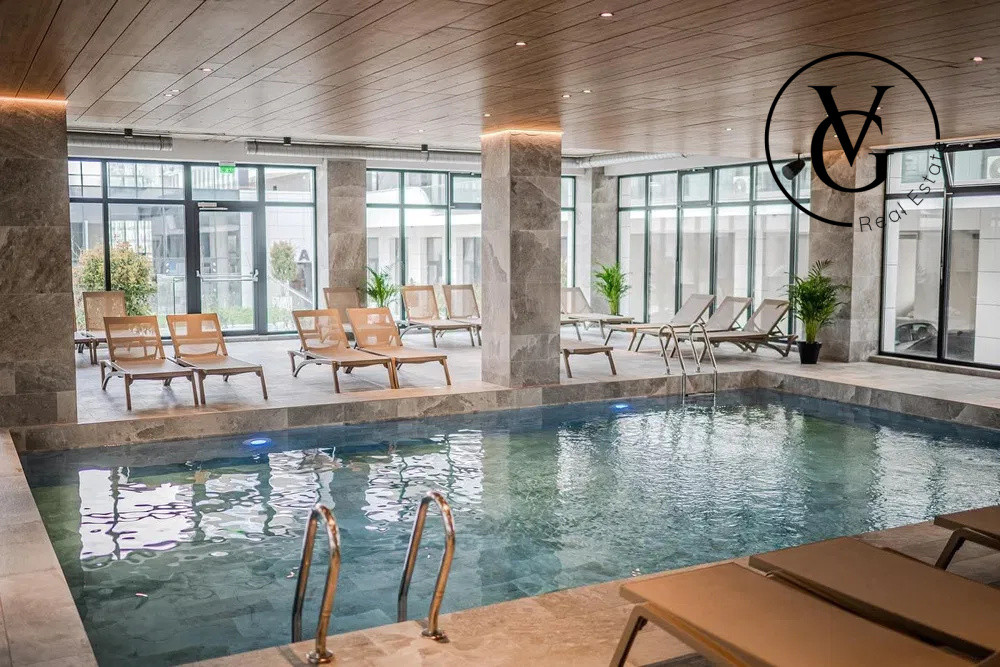 • Zona și facilități: piscina interioara, exterioara, sauna, sala de fitness, plaja,magazine, școli, grădinițe, stații de transport public