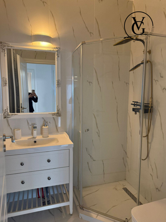 1 baie este prevăzută cu cabina de dus si cea de-a doua baie cu cada .
