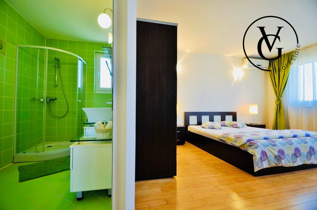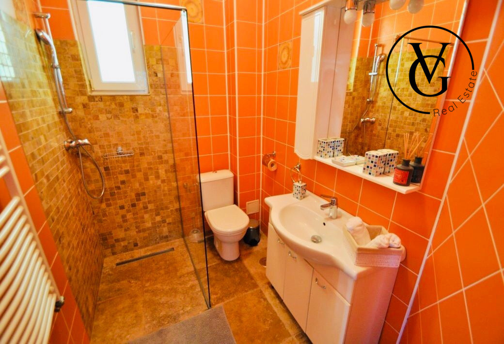 Compartimentarea inteligenta a casei e cea care permite utilizarea optima a spatiului, fara pierderi inutile de suprafete, fiind compartimentata astfel: living, 3 dormitoare cu baie proprie, bucatarie open-space, terasa cu vedere la mare.