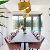 Accesul catre terasa acoperita si piscina incalzita creeaza o continuitate naturala intre interior si exterior.