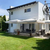 Parter: garaj închis cu spațiu de depozitare și cameră tehnică, birou/dormitor, baie cu duș, living cu tavan înalt și șemineu, bucătărie deschisă, terasă cu acces din living și bucătărie